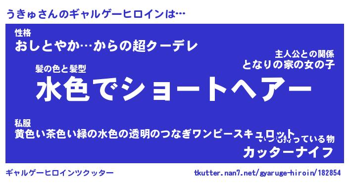 | 男性向けラノベタイトル風あだ名 | 『うきゅの憂鬱』 |