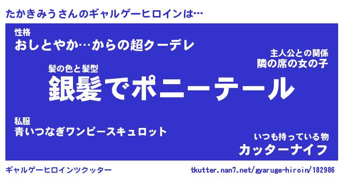 | 女子向けラノベタイトル風あだ名 | 『たかきみう姫と円卓の騎士』 |
