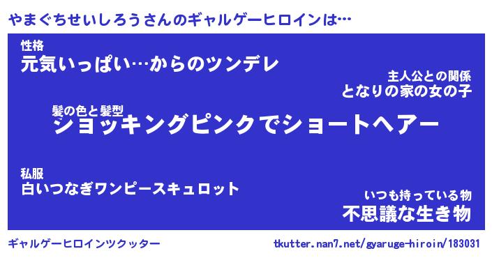 | 女子向けラノベタイトル風あだ名 | 『(仮)やまぐちせいしろうのやんごとなき事情』 |