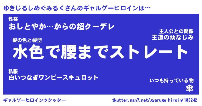 | 女子向けラノベタイトル風あだ名 | 『(仮)ゆきじるしめぐみるくのやんごとなき事情』 |