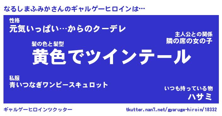 | 肩書あだ名 | 『なるしまふみか御曹司』 |