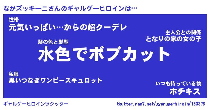 | 女子向けラノベタイトル風あだ名 | 『(仮)なかズッキーニのやんごとなき事情』 |