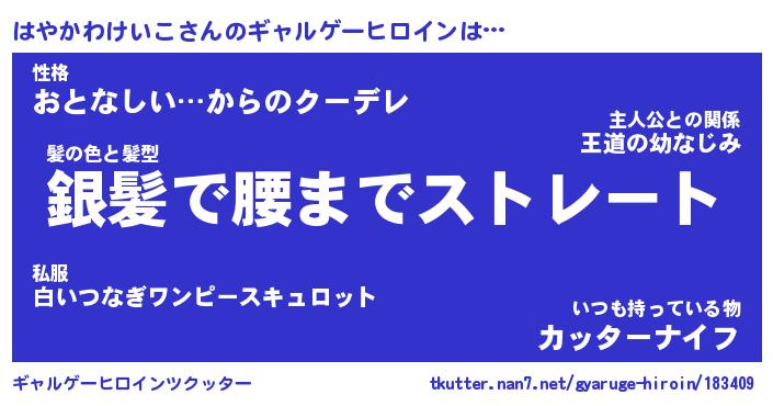| 女子向けラノベタイトル風あだ名 | 『はやかわけいこ姫と円卓の騎士』 |