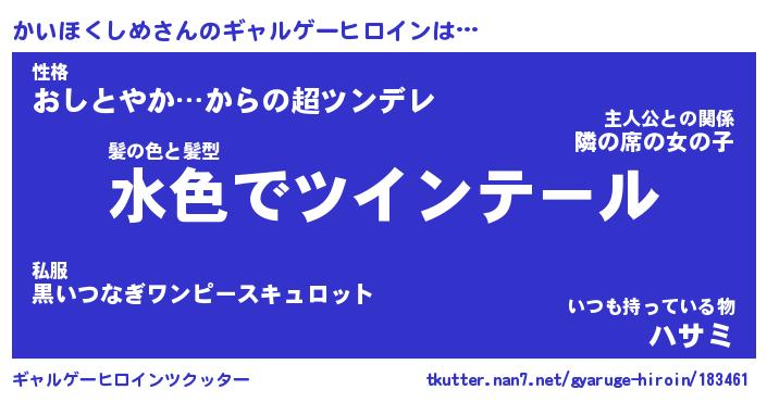 | 男性向けラノベタイトル風あだ名 | 『かいほくしめの憂鬱』 |