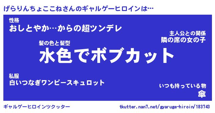 | 男性向けラノベタイトル風あだ名 | 『げらりんちょここねの憂鬱』 |