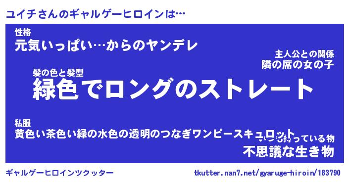 | ファンタジー風あだ名 | 『ユイフェル』『エターナルユイチー』 |