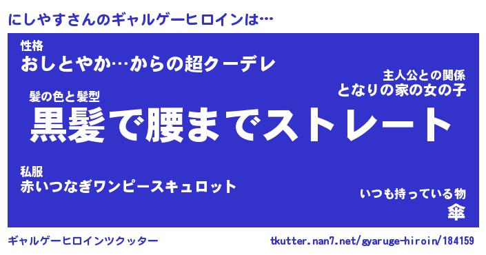 | 女子向けラノベタイトル風あだ名 | 『(仮)にしやすのやんごとなき事情』 |