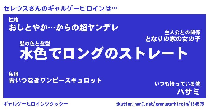 | ヒーロー風カッコイイあだ名 | 『スーパーセレウス』『天弓騎士セレ』 |