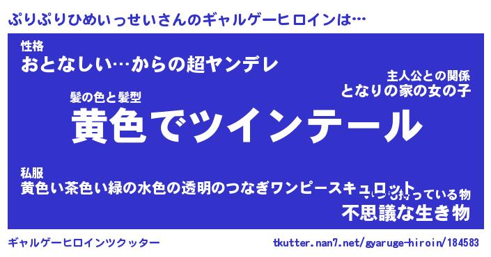 | ツイッター | ぷりぷりひめいっせいさんのツイッターID『namakemono_kun』 |