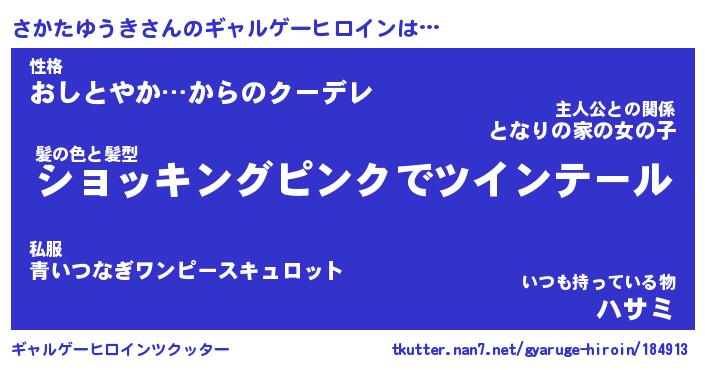 | 女子向けラノベタイトル風あだ名 | 『(仮)さかたゆうきのやんごとなき事情』 |