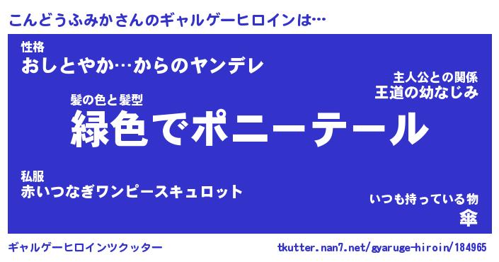 | 女子向けラノベタイトル風あだ名 | 『誰かこのこんどうふみかを説明してください! ~契約から始まるウェディング~』 |