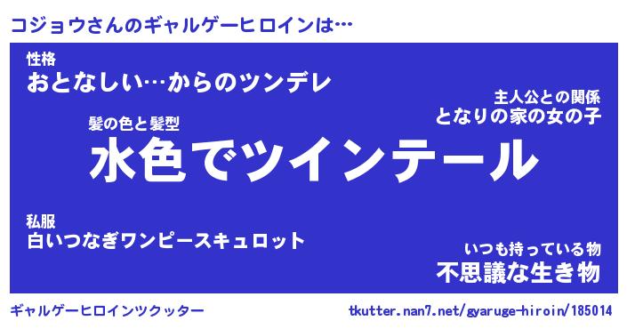 | 男性向けラノベタイトル風あだ名 | 『コジョウの憂鬱』 |