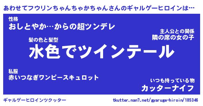 | 男性向けラノベタイトル風あだ名 | 『あわせてフウリンちゃんちゃかちゃんの憂鬱』 |