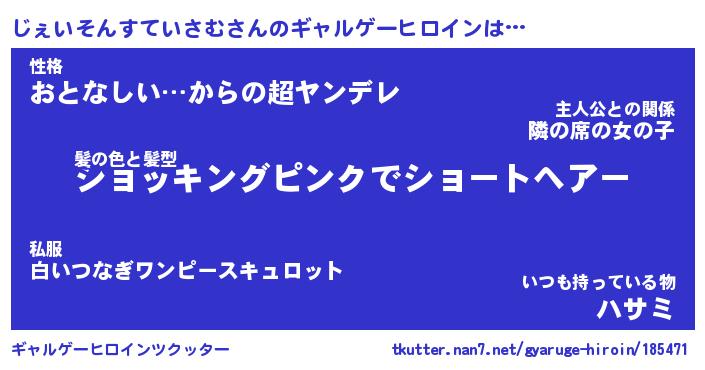| 男性向けラノベタイトル風あだ名 | 『じぇいそんすていさむの憂鬱』 |