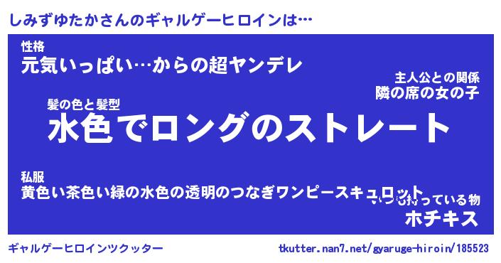 | ヘコむあだ名 | 『しみにゅー』『なまこ酢』『しみを』 |