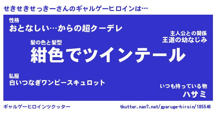 | 男性向けラノベタイトル風あだ名 | 『セキセキセッキーアートオンライン』 |