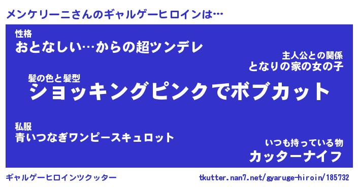 | 男性向けラノベタイトル風あだ名 | 『メンケリーニの憂鬱』 |