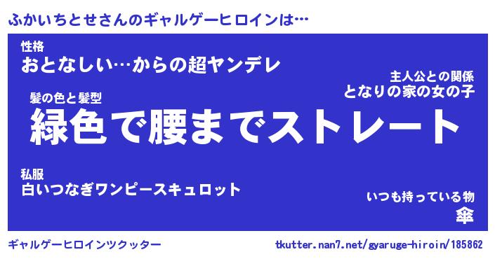 | 男性向けラノベタイトル風あだ名 | 『フカイチトセアートオンライン』 |