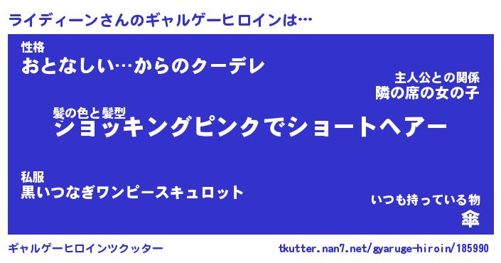 | 女子向けラノベタイトル風あだ名 | 『(仮)ライディーンのやんごとなき事情』 |