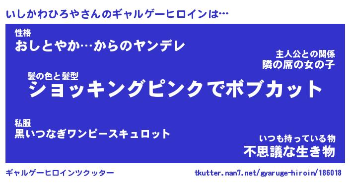 | 女子向けラノベタイトル風あだ名 | 『(仮)いしかわひろやのやんごとなき事情』 |