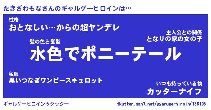 | 男性向けラノベタイトル風あだ名 | 『たきざわもなの憂鬱』 |