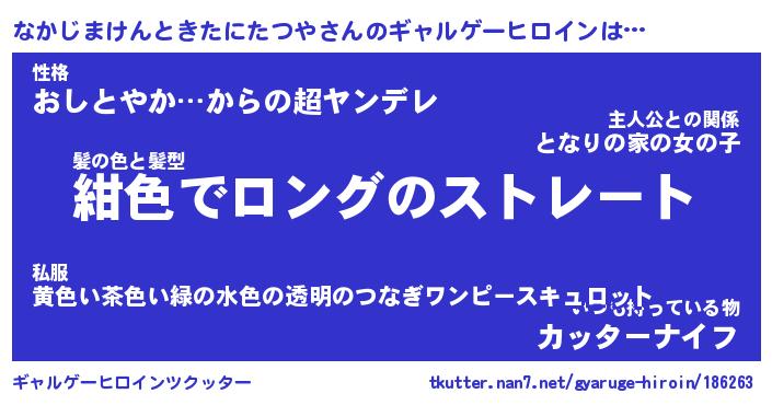 | 肩書あだ名 | 『なかじまけんときたにたつや社長令嬢』 |
