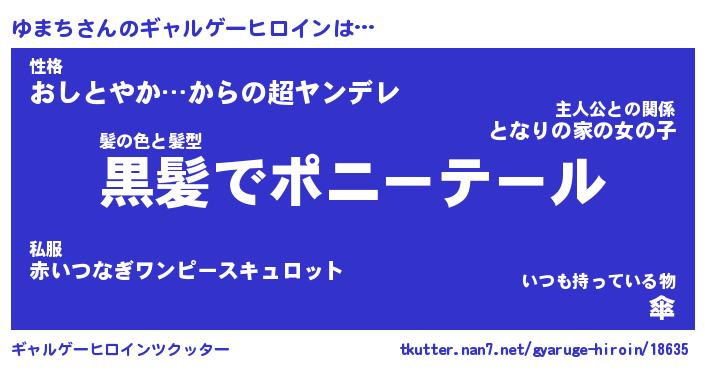 | 男性向けラノベタイトル風あだ名 | 『ゆまちの憂鬱』 |