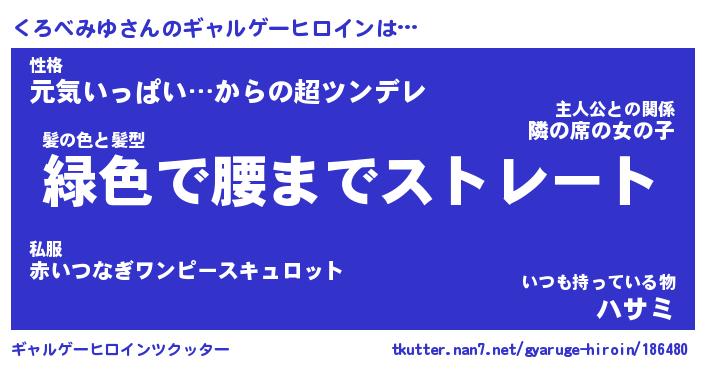 | 胡散臭い通販商品みたいなあだ名 | 『モテモテ間違いなし霊験あらたかなお札…その名も「くろべみゆ」』 |