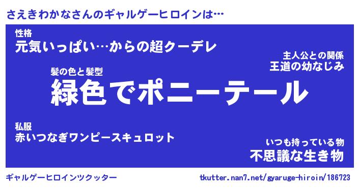 | ヒーロー風カッコイイあだ名 | 『スーパーサエキワカナ』『暗黒騎士サエ』 |