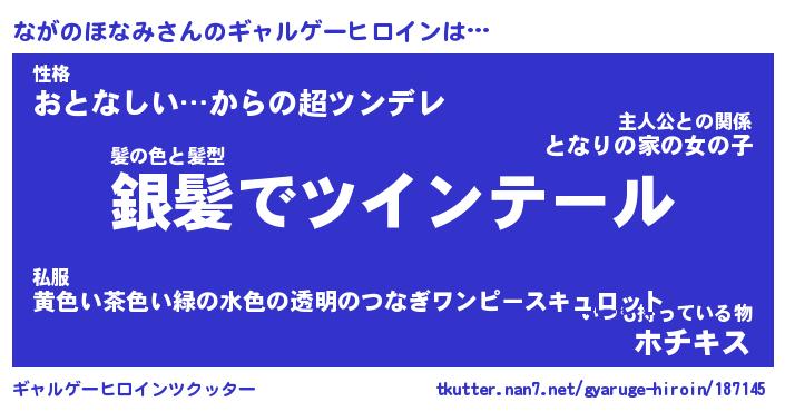 | ヘコむあだ名 | 『ながにゅー』『つくし』 |