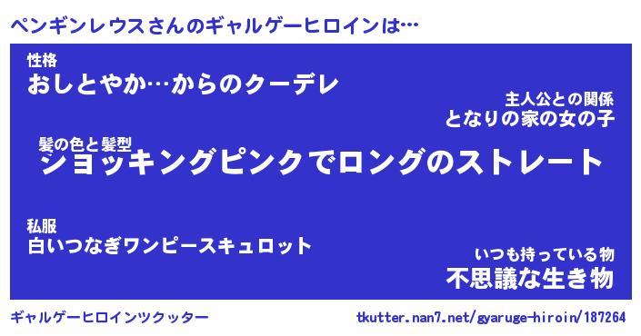 | 男性向けラノベタイトル風あだ名 | 『ペンギンレウスの憂鬱』 |