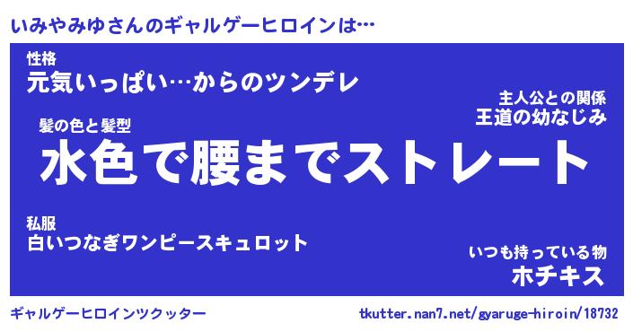 | 男性向けラノベタイトル風あだ名 | 『いみやみゆの憂鬱』 |