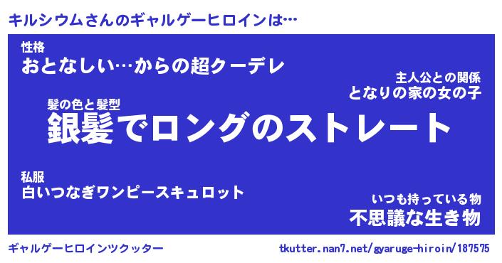 | ファンタジー風あだ名 | 『キルフェル』『エターナルキルシウムー』 |