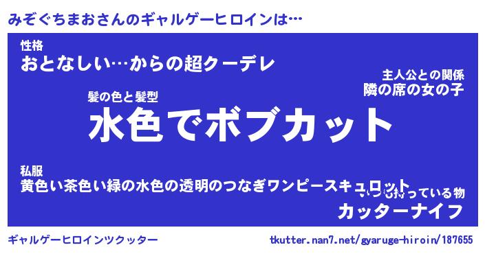 | 女子向けラノベタイトル風あだ名 | 『(仮)みぞぐちまおのやんごとなき事情』 |