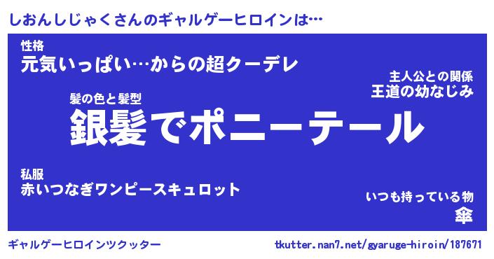 | 男性向けラノベタイトル風あだ名 | 『しおんしじゃくの憂鬱』 |