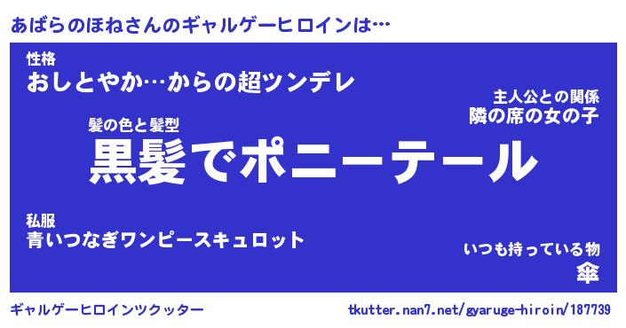 | ヘコむあだ名 | 『あばっふぃ~』『つくし』 |