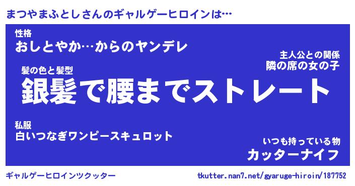 | 男性向けラノベタイトル風あだ名 | 『まつやまふとしの憂鬱』 |