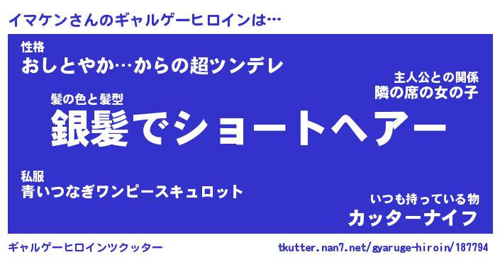 | ファンタジー風あだ名 | 『イマフェル』『エターナルイマケンー』 |