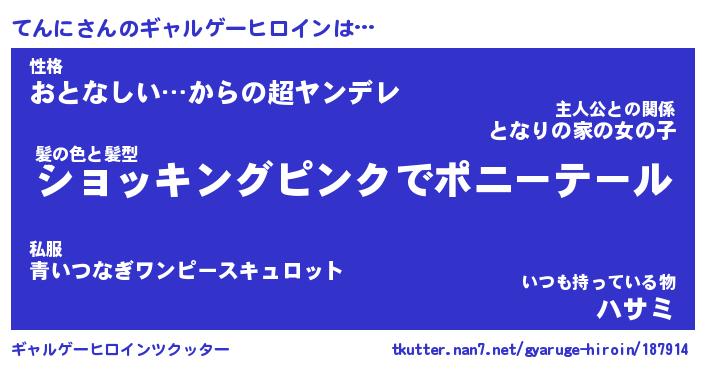 | 男性向けラノベタイトル風あだ名 | 『てんにの憂鬱』 |