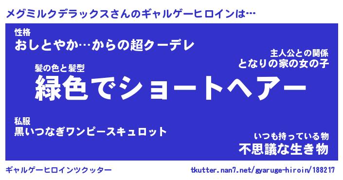 | ツイッター | メグミルクデラックスさんのツイッターID『dendenmushi_nyan』 |