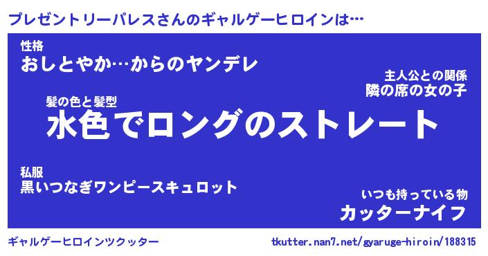 | 男性向けラノベタイトル風あだ名 | 『プレゼントリーパレスの憂鬱』 |