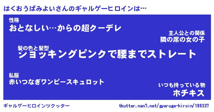 | 男性向けラノベタイトル風あだ名 | 『はくおうばみよいの憂鬱』 |