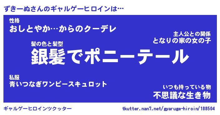 | 男性向けラノベタイトル風あだ名 | 『ずきーぬの憂鬱』 |