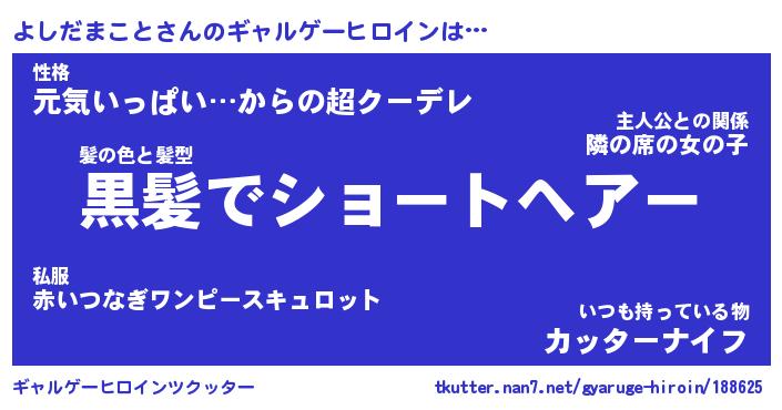 | ヒーロー風カッコイイあだ名 | 『スーパーヨシダマコト』『魔戒騎士ヨシ』 |