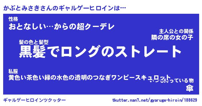 | 女子向けラノベタイトル風あだ名 | 『(仮)かぶとみさきのやんごとなき事情』 |