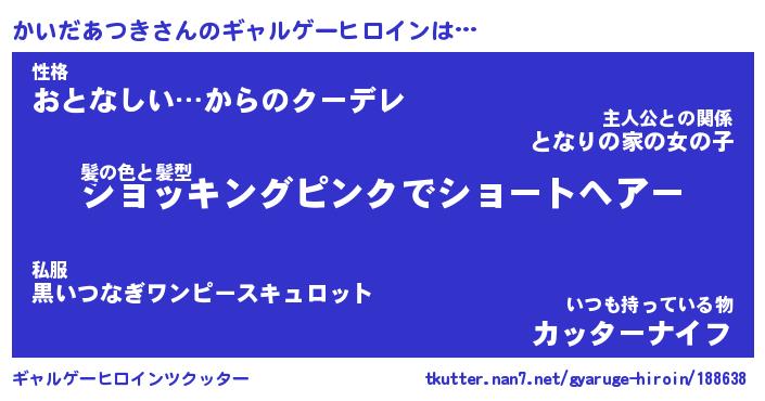 | 女子向けラノベタイトル風あだ名 | 『(仮)かいだあつきのやんごとなき事情』 |
