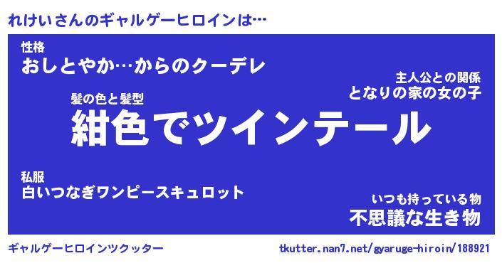 | ヘコむあだ名 | 『れけもー』『つくし』『れけぷりん』 |