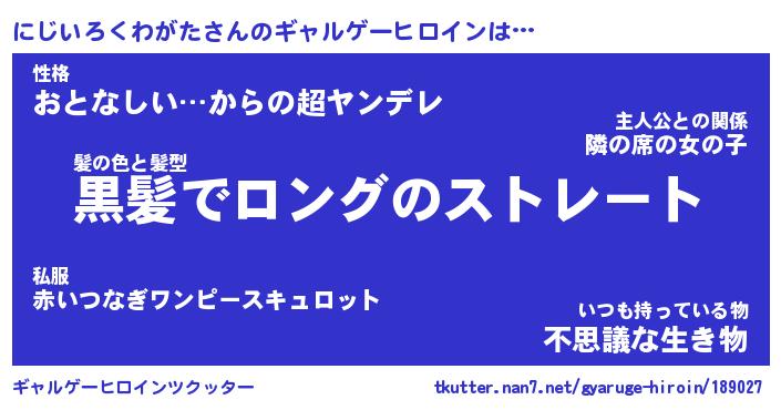 | ヘコむあだ名 | 『にじにゅー』『酢こんぶ』 |