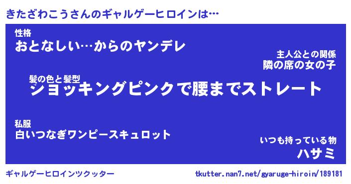 | 女子向けラノベタイトル風あだ名 | 『(仮)きたざわこうのやんごとなき事情』 |