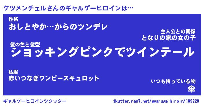 | 男性向けラノベタイトル風あだ名 | 『ケツメンチェルの憂鬱』 |